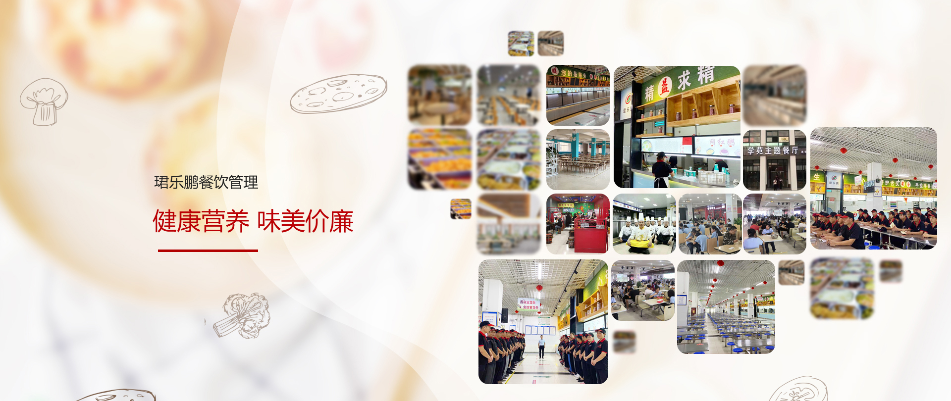 威海珺樂(lè)鵬餐飲管理有限公司,是一家面向全國(guó)的餐飲管理服務(wù)機(jī)構(gòu),專(zhuān)注學(xué)校、醫(yī)院、企事業(yè)單位的食堂承包與托管,涵蓋膳食管理、食堂規(guī)劃咨詢、設(shè)計(jì)的專(zhuān)業(yè)餐飲公司, 在餐飲行業(yè)中有著全新的經(jīng)營(yíng)理念和多年的實(shí)踐經(jīng)驗(yàn),重點(diǎn)推行五常管理及4D管理模式。公司始終堅(jiān)持“以食品安全求生存,以服務(wù)質(zhì)量求發(fā)展”,全面深化改革,持續(xù)優(yōu)化整合資源,自成立公司之日起, 公司以“做好專(zhuān)業(yè)食堂承包為服務(wù)宗旨,以提高各服務(wù)單位用餐質(zhì)量為已任”,營(yíng)養(yǎng)合理搭配為企業(yè)原則,堅(jiān)持“健康營(yíng)養(yǎng)、味美價(jià)廉”的八字方針